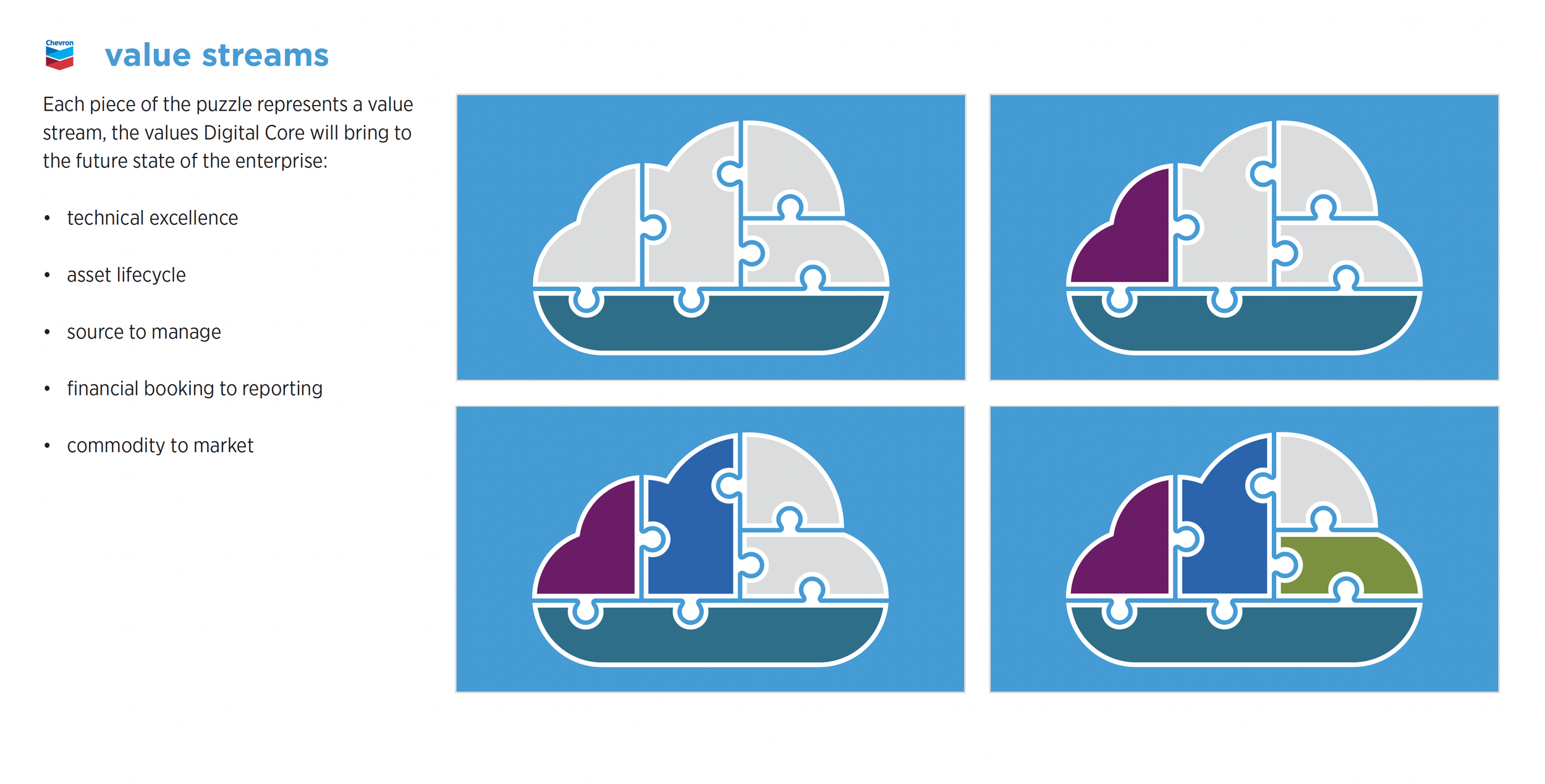Digital Core is the replacement of multiple, outdated enterprise systems with one integrated, cloud-based foundation that will power the competitive edge. The campaign value cloud puzzle graphic pairs brand warm and cool colors together to create distinction between the different values that make up the value cloud. The client’s ask was to create a fun game aspect to this campaign, which is why the cloud puzzle concept was developed, using dynamic and vibrant colors from the brand color palette. This concept won a best of brand award in the following categories: best use of color, best use of icons, and best video.